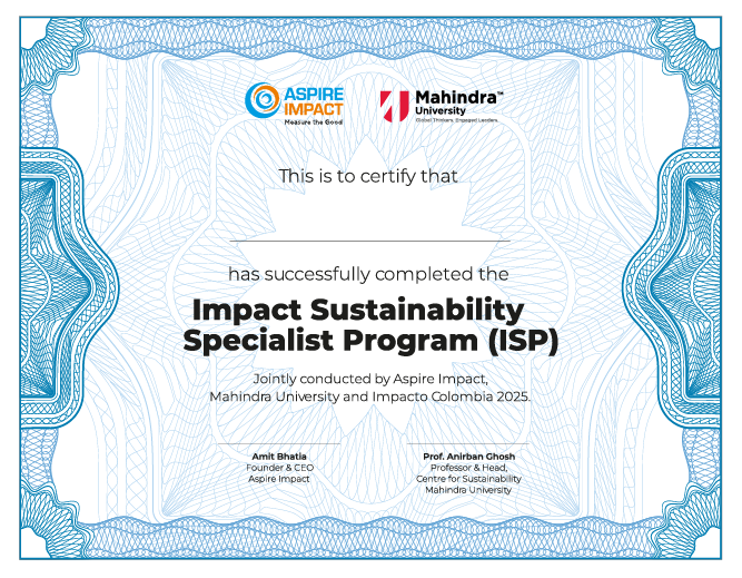 Certificado oficial firmado por Aspire Impact y la Universidad Mahindra.